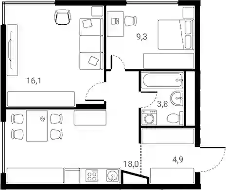 16 093 145 ₽2-к.квартира, 56.52 м², 2 эт.