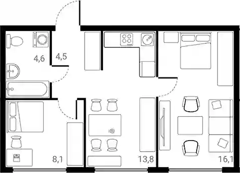 12 933 506 ₽1-к.квартира, 42.44 м², 3 эт.