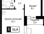 8 531 582 ₽2-к.квартира, 32.5 м², 9 эт.