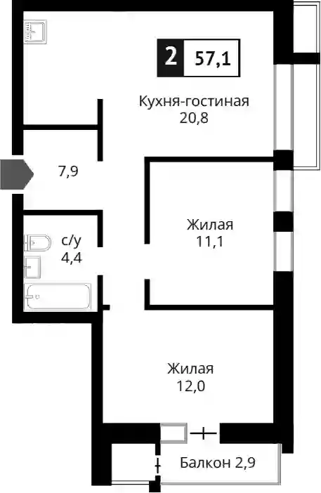 11 522 449 ₽2-к.квартира, 42.5 м², 4 эт.