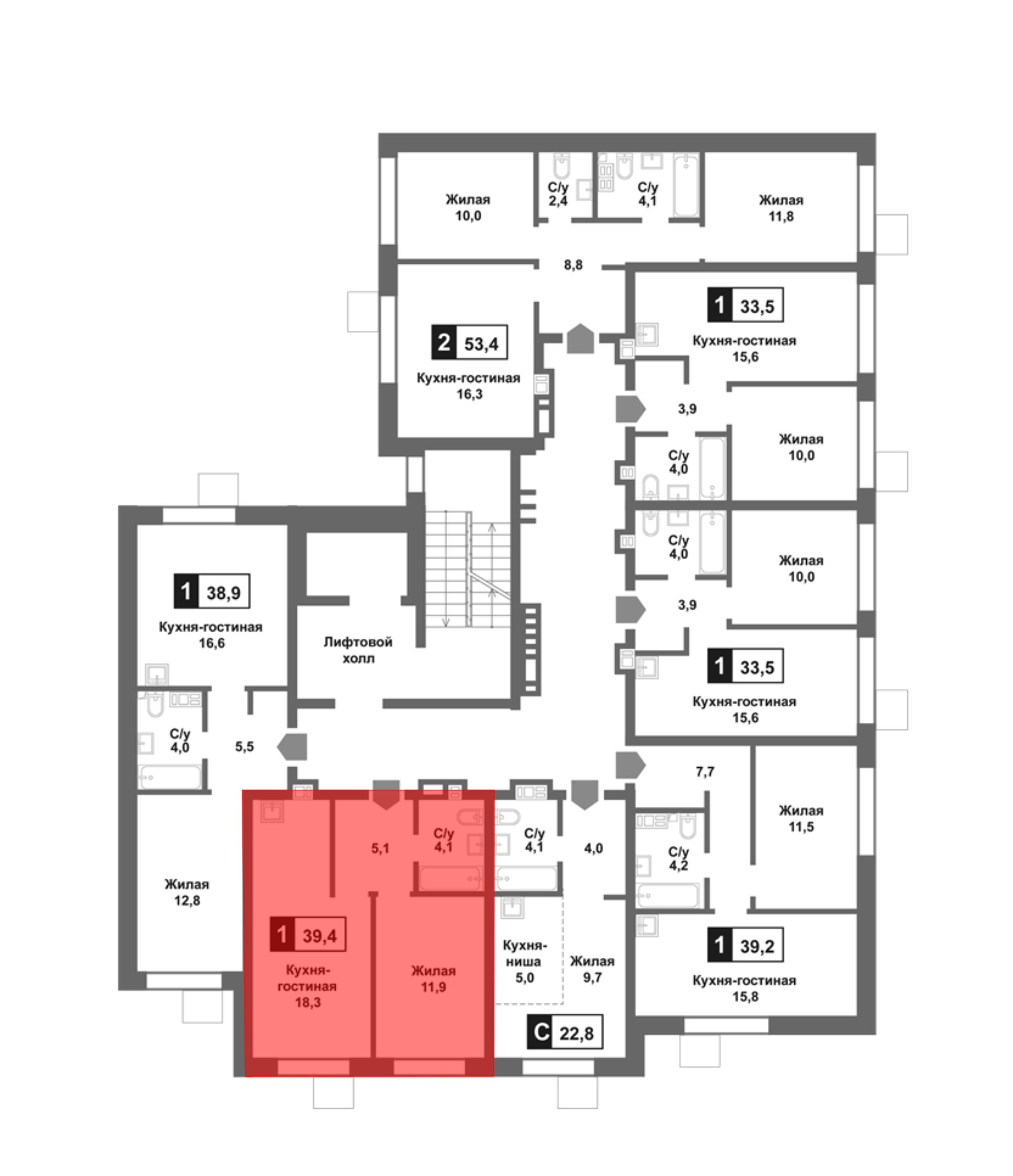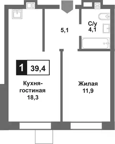 39.4 м2