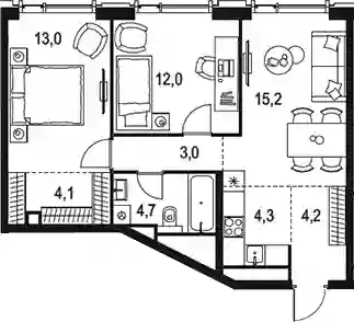 3-к.квартира, 60.5 м², 19 эт. в ЖК Level Академическая 1 очередь, корп. 1