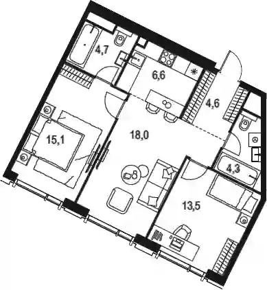 3-к.квартира, 66.8 м², 17 эт. в ЖК Level Академическая 1 очередь, корп. 1