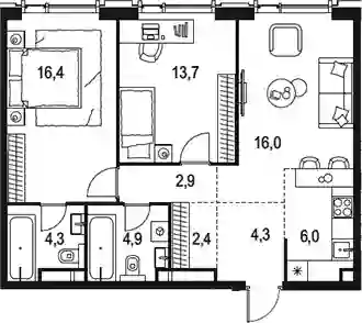 64 129 329 ₽3-к.квартира, 66.7 м², 30 эт.