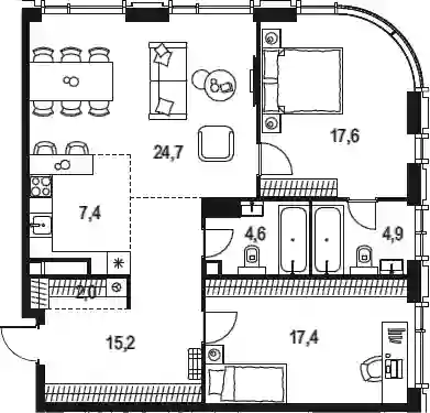 3-к.квартира, 93.8 м², 15 эт. в ЖК Level Академическая 1 очередь, корп. 1