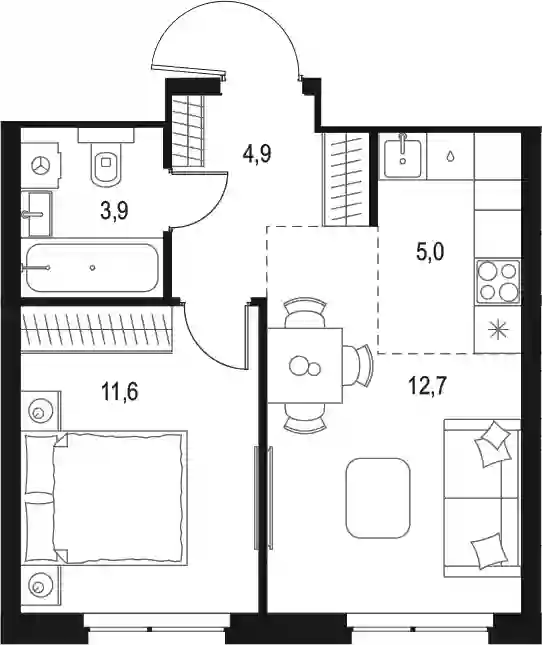 22 847 145 ₽2-к.квартира, 40.7 м², 2 эт.