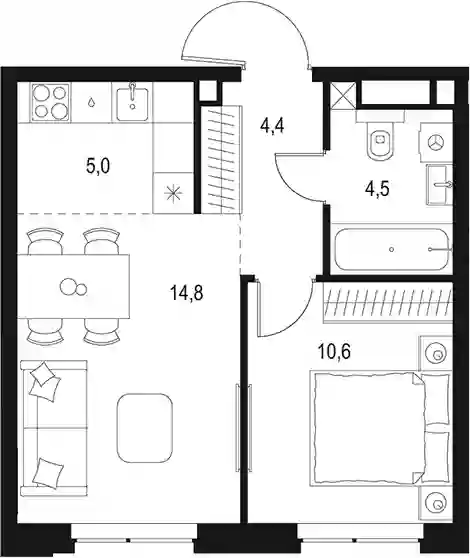 19 801 661 ₽2-к.квартира, 42.4 м², 5 эт.
