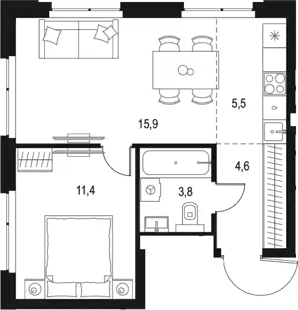 20 181 241 ₽2-к.квартира, 42.2 м², 15 эт.
