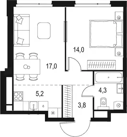 20 332 463 ₽2-к.квартира, 43.3 м², 2 эт.
