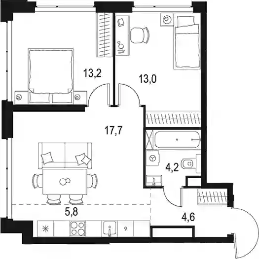 В комплексе предложено 20 вариантов планировочных решений площадью от 17 до 123 кв. метров. Есть нестандартные
