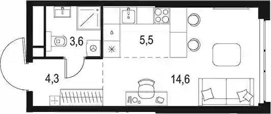 17 855 543 ₽Студия, 28 м², 5 эт.