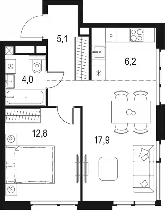 25 917 051 ₽2-к.квартира, 46.1 м², 15 эт.
