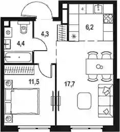 2-к.квартира, 44.1 м², 3 эт. в ЖК Level Мичуринский Корпус 9