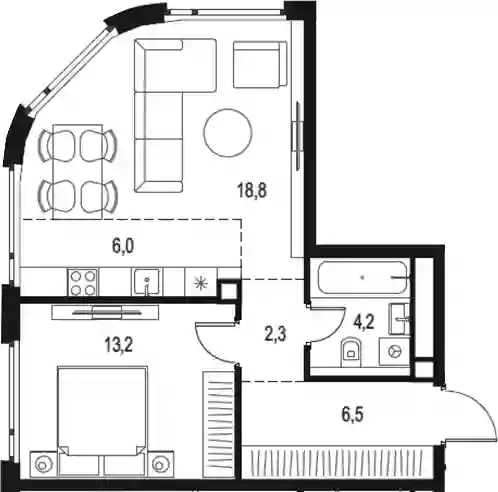 20 754 337 ₽2-к.квартира, 42.1 м², 22 эт.