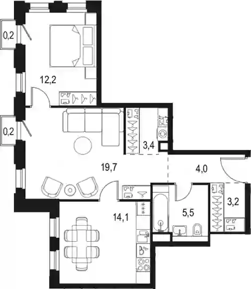 В комплексе предложено 20 вариантов планировочных решений площадью от 17 до 123 кв. метров. Есть нестандартные