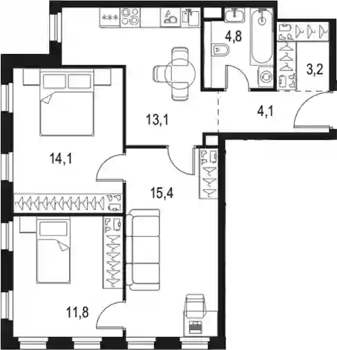 В комплексе предложено 20 вариантов планировочных решений площадью от 17 до 123 кв. метров. Есть нестандартные