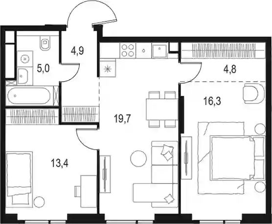 26 025 890 ₽2-к.квартира, 62.8 м², 19 эт.