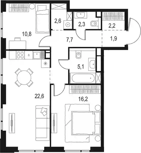 30 290 850 ₽3-к.квартира, 74.1 м², 26 эт.