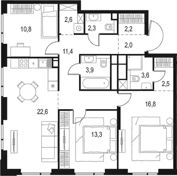 4-к.квартира, 94 м², 17 эт. в ЖК Level Войковская Корпус 3