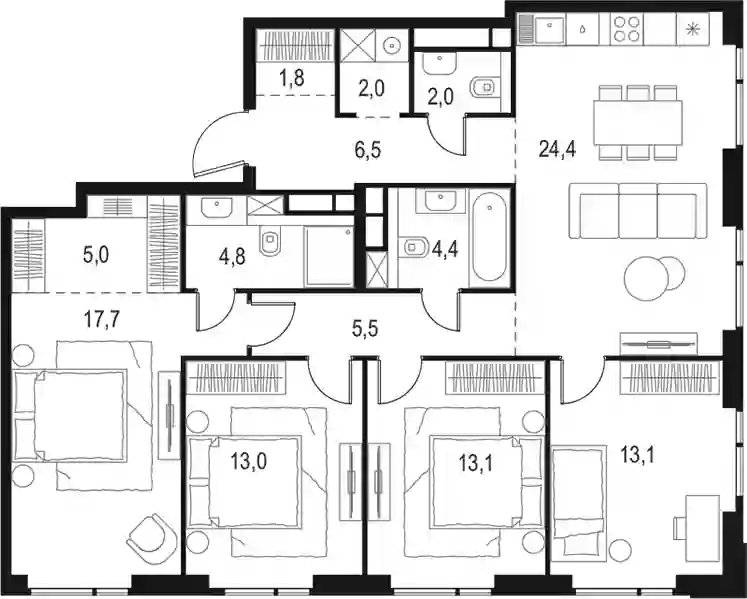 В комплексе предложено 20 вариантов планировочных решений площадью от 17 до 123 кв. метров. Есть нестандартные