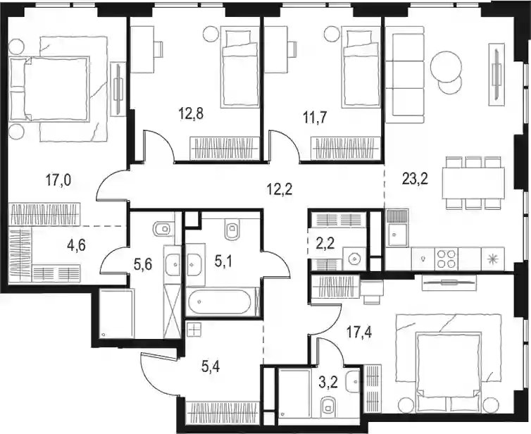 5+к.квартира, 120.4 м², 18 эт. в ЖК Level Войковская Корпус 3