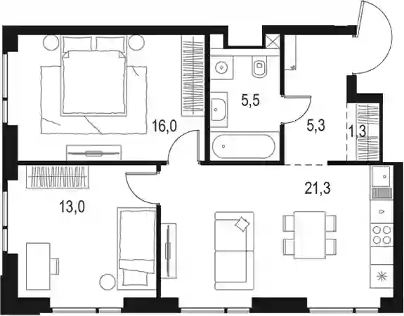 Жилой комплекс включает студии и квартиры от 1 до 4 комнат, включая европланировки с кухней-нишей и всего 3 квартиры с террасами от 5 до 16 кв. м. Площадь лотов варьируется от 28,4 до 120,4 кв. м. В корпусах представлены два формата отделки: white box и без отделки. В white box выполнены стяжка, черновая электрика, звуко- и гидроизоляция, перегородки, штукатурка, подрозетники и выводы под освещение. Возможны объединения квартир и создание индивидуальных планировок.