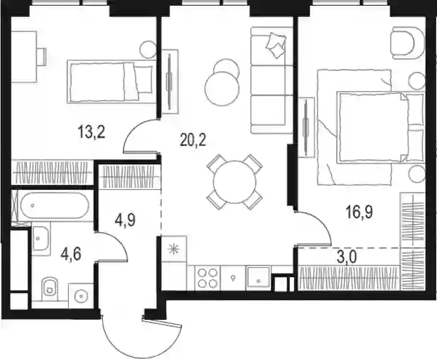 Жилой комплекс включает студии и квартиры от 1 до 4 комнат, включая европланировки с кухней-нишей и всего 3 квартиры с террасами от 5 до 16 кв. м. Площадь лотов варьируется от 28,4 до 120,4 кв. м. В корпусах представлены два формата отделки: white box и без отделки. В white box выполнены стяжка, черновая электрика, звуко- и гидроизоляция, перегородки, штукатурка, подрозетники и выводы под освещение. Возможны объединения квартир и создание индивидуальных планировок.