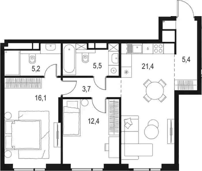 3-к.квартира, 69.7 м², 24 эт. в ЖК Level Войковская Корпус 4