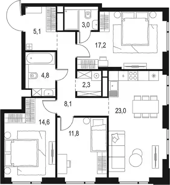 В комплексе предложено 20 вариантов планировочных решений площадью от 17 до 123 кв. метров. Есть нестандартные