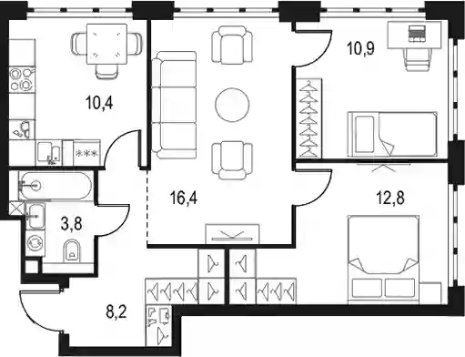 В проекте представлено множество планировочных решений: от студий до просторных 4х-комнатных квартир. Все лоты сдаются с 3 видами отделки, высотой потолков 2,85 метров, увеличенными и панорамными окнами.