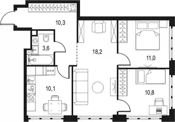3-к.квартира, 64 м², 14 эт. в ЖК Level Южнопортовая Корпус 12