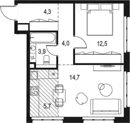 2-к.квартира, 45.1 м², 4 эт. в ЖК Level Южнопортовая Корпус 14