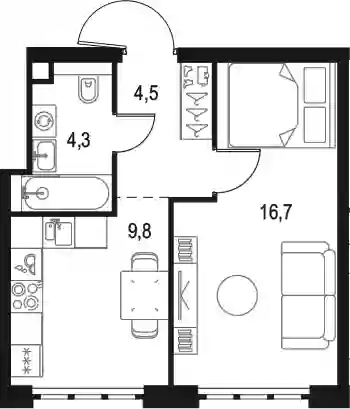 1-к.квартира, 35.3 м², 42 эт. в ЖК Level Южнопортовая Корпус 8