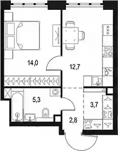 1-к.квартира, 38.5 м², 22 эт. в ЖК Level Южнопортовая Корпус 8