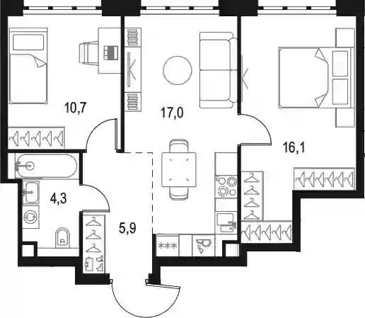 2-к.квартира, 54 м², 38 эт. в ЖК Level Южнопортовая Корпус 8