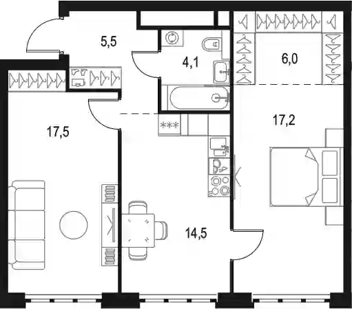 2-к.квартира, 64.8 м², 43 эт. в ЖК Level Южнопортовая Корпус 8