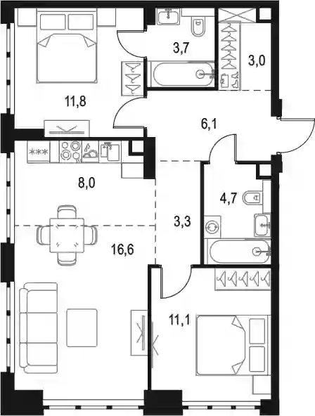 3-к.квартира, 68.3 м², 47 эт. в ЖК Level Южнопортовая Корпус 8