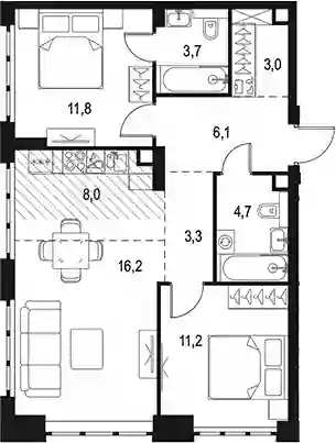 3-к.квартира, 68 м², 27 эт. в ЖК Level Южнопортовая Корпус 8