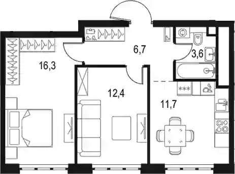 2-к.квартира, 50.7 м², 44 эт. в ЖК Level Южнопортовая Корпус 9