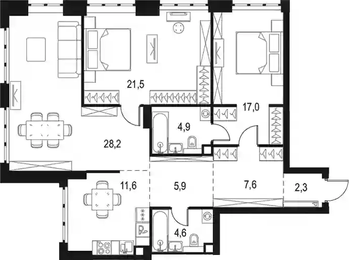 3-к.квартира, 103.6 м², 7 эт. в ЖК Level Южнопортовая Корпус 9