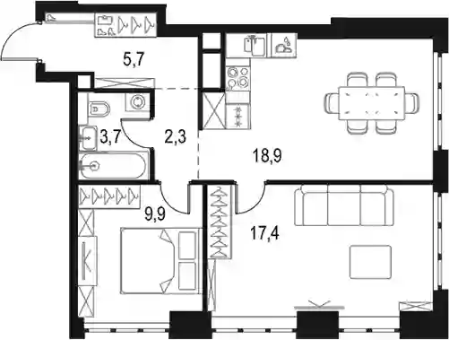 3-к.квартира, 57.9 м², 18 эт. в ЖК Level Южнопортовая Корпус 9