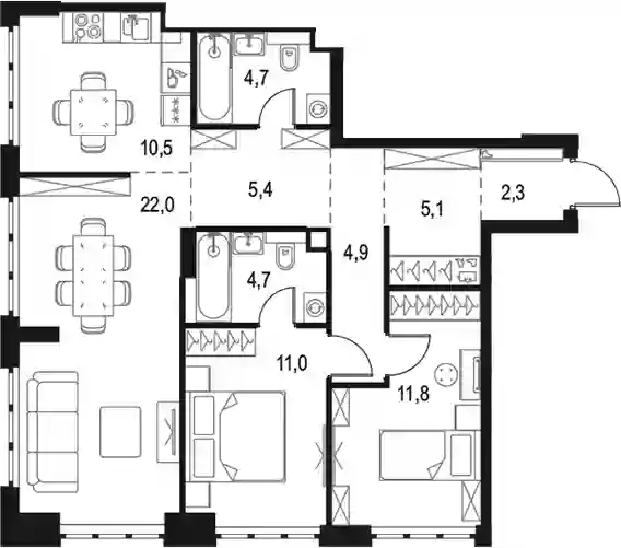 3-к.квартира, 82.4 м², 27 эт. в ЖК Level Южнопортовая Корпус 9