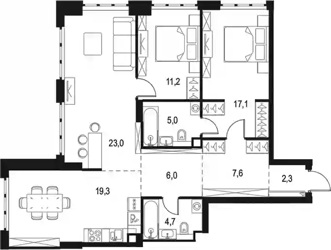 3-к.квартира, 96.2 м², 37 эт. в ЖК Level Южнопортовая Корпус 9