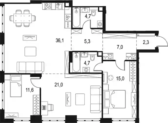 4-к.квартира, 107.7 м², 49 эт. в ЖК Level Южнопортовая Корпус 9