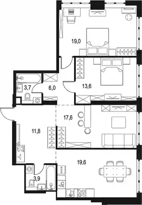 4-к.квартира, 95.2 м², 25 эт. в ЖК Level Южнопортовая Корпус 9