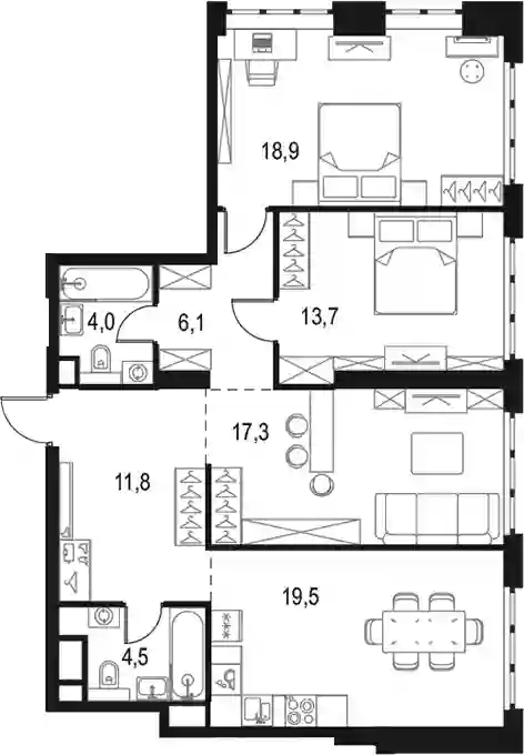4-к.квартира, 95.8 м², 6 эт. в ЖК Level Южнопортовая Корпус 9