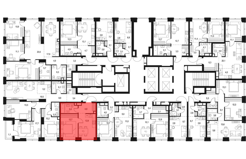 В комплексе предложено 20 вариантов планировочных решений площадью от 17 до 123 кв. метров. Есть нестандартные