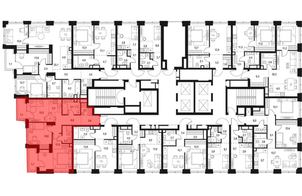 В комплексе предложено 20 вариантов планировочных решений площадью от 17 до 123 кв. метров. Есть нестандартные