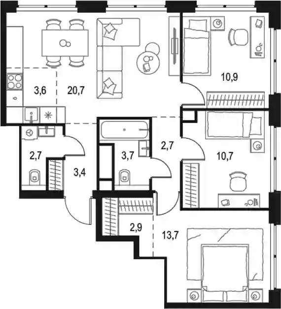 43 447 324 ₽3-к.квартира, 70.79 м², 15 эт.