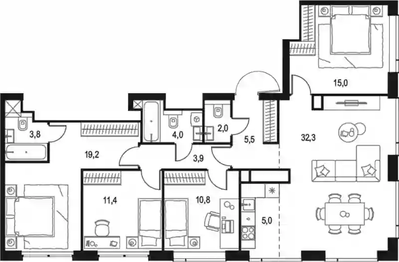 5+к.квартира, 112.9 м², 59 эт. в ЖК Level Звенигородская Корпус 2
